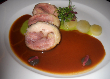 I started with the Dungeness crab or “Dormeu" ($9) which proved to be a brick of shredded crab with flecks of avocado and orange. Different from what I expected, but as fresh as if we were not far removed from an Alaskan fishing boat. The main course choice was identified as Pintaude a l’Etue — a slow-cooked guinea hen placed on a breathtaking sauce (shown right). While I indulged in an after-dinner Chocolate and Chocolate dessert, two chocolate pastries accompanied by Grand Marnier and delivered in a frozen thimble ($12 and worth the calories), I noticed the tabletop across from me was covered in a mist. My waitperson, shy but informative Viola, explained that this was an ice cream dessert, and that the “fog" was created when tea and cinnamon are poured over a dry ice bed. L’addition for lunch, with 17 percent service, was $67 per person. Lunch at a posh French restaurant in Manhattan the next day had less flair and cost $122. But go see for yourself; the experience cannot be duplicated this side of the English Channel, and we only have to go as far as the Hudson River. The Bocuse Restaurant at the Culinary Institute of America1946 Campus Drive (Route 9), Hyde Park, NY (845) 471-6608 Open: Tuesday through Saturday Lunch: 11:30 a.m.–1 p.m. Dinner: 6–8:30 p.m. Closed on Sundays, Mondays and major holidays.