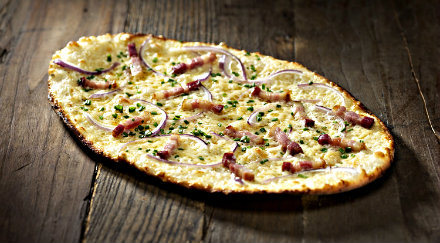 By Katharine Millonzi Approaching The Flammerie, a new bistro in Kinderhook, NY, was a bit like peering into Mr. Fezziwig’s Christmas party: a warm, illuminated scene that beckoned bright and welcoming against the dark, snowy evening outside. A jolly crowd filled the front bar area, some waiting to be seated, most enjoying both a view into the kitchen and a draft from the well-curated beer list, which includes a flight sampler of six local beers. The circa 1850 space, formerly the home of Blackwood & Brouwer Booksellers, is split between the bar and a simply furnished, 26-seater back dining room. The restaurant, which opened last month, is a brick-and-mortar incarnation of the Black Forest Flammkuchen food truck that allows the owners to offer a full menu of what our waitress described as a take on French-German comfort food. “Flammerie" means ‘the place for ‘flammkuchen’, the proprietors’ signature paper-thin crusted wood-fired flatbread.