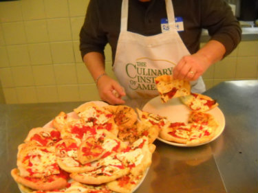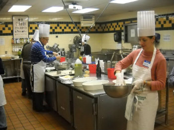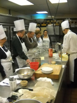 The Institute offers these programs for what might be called the serious amateur (the kind of people who know that 'garland,’ ‘salamander’ and ‘mandolin’ refer to important kitchen tools, and not the singer, a lizard, or a musical instrument), and the one-day classes range from soups, grilling and Mediterranean cuisine to what is called “Gourmet Meals in Minutes," a small sampling of its Food Enthusiast program of classes. And as I was reminded on Saturday, this is a great way for a smart husband or girlfriend to give a Christmas present that reaps benefits at home. This was my third session in one of those weekend classes, and this time I chose Italian cuisine. The set-up in each class is much the same: Each student gets an oversized apron, as big as the ones worn by the downstairs staff in Downton Abbey, together with a toque blanche, that tall hat that is the mark of a chef. (The kitchen help at Gramercy Tavern and One Madison Park may wear baseball caps, but at the Culinary, everyone covers his or her head with a “toque.")