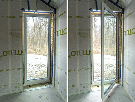 The European-style "tilt and turn" triple-glazed windows provide further value in their engineered, thermally broken frames. On the left is the tilt position and on the right is the turn.