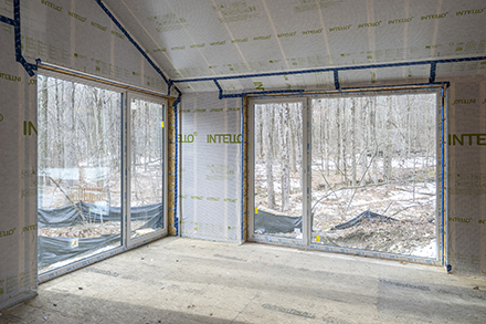 Most of the triple-glazed, European-style windows have been installed.