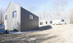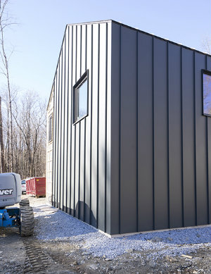 Garage/studio building with metal roof and facade.
