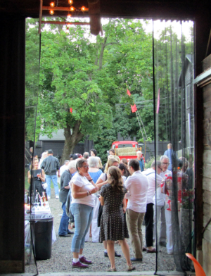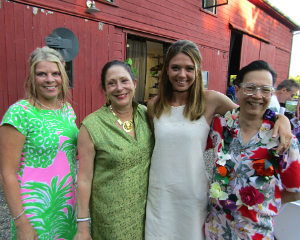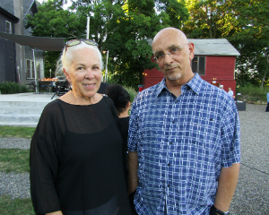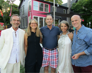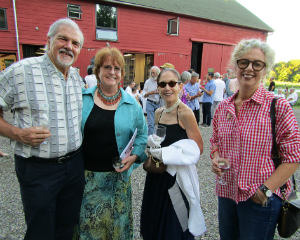 Amy Krzanik reports from Hudson. Things were really cookin’ at the Raise The Roof Sock Hop, a benefit for the new Hudson Area Library, on Saturday evening, August 6. Around 150 supporters “made the scene” in their best ‘50s duds at the home of artists Ken Kraus and Anna d'Onofrio. The second-annual gala saw DJ T-Bone spinning platters for the crowd as they sipped cocktails from Fairview Wines & Spirits and Chatham Brewing, enjoyed tastings from Berkshire Mountain Distillers, and sampled cheeses, olives and other snacks from a decadent spread courtesy of Olde Hudson. During dinner — catered by Memorable Cuisine and featuring delectable desserts by Café Le Perche — the evening’s volunteer auctioneer, Bob Rasner, employed appropriate literary quotes and a personal story of a childhood crush on his town’s children’s room librarian, to encourage guests to raise their paddles. The “Call for the Cause” live auction collected funds not to raise to the roof — that milestone was recently and happily achieved — but to furnish the new venue, which has never been more popular, with a self-checkout scanner ($5,000), an HD projector ($6,000) and screen ($1,000), and 45 more chairs for patrons. [Pictured above, Ken Kraus, Susan Fingar, Mark Fingar, Anna D'Onofrio and Carsten Otto.]