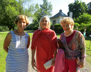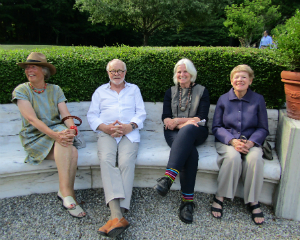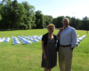 Amy Krzanik reports from Stockbridge. You couldn’t have wished for a more perfect summer day for an outdoor event than Friday, June 24, as Chesterwood’s 38th annual sculpture exhibition, The Nature of Glass, opened with a reception, followed by a fundraising dinner. Many of the 12 internationally recognized glass artists were on hand to discuss their work during a walking tour of the 24 pieces, led by the exhibition’s curator, Jim Schantz of Schantz Galleries in Stockbridge. Creations by locals such as gala co-chair Tom Patti join art by a handful of Seattle residents and even a sculptor from the Netherlands for this year’s exhibit, and some are the culmination of glassblowers creating outdoor pieces for the very first time. In addition to the artists listed above and shown below, The Nature of Glass includes pieces by Martin Blank, Daniel Clayman, Sidney Hutter, John Kiley, Kait Rhoads, Thomas Scoon and William Carlson, who was awarded this year’s Lillian Heller Curator’s Award. The 2016 sculpture show will be on view daily until Sept. 18. [Above, Elise Abrams, Alexander Sohn and Chesterwood's executive director Donna Hassler.]