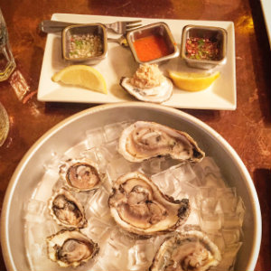 The place is billed as a pub, but the cocktail menu is full of interesting $12 options such as The New Fangled (Albany Distilling Dark Rum, Luxardo Marchino, Dry Curaçao and bitters), The New York Ass (Bootlegger Vodka, fresh lime and ginger beer) and The Chatham Reviver (Ballast Point Gin, Cocchi Americano, Dry Curaçao, lemon, Chef Handsome Homemade Bitters, with an absinthe rinse.) I went with a New Fangled that was nice and sweet with a large hand-cut cube of ice and a lemon peel garnish; it packed a new-fangled wallop. We got a pint of The Chatham Brewing/The People’s Pub Citracot IPA to savor as well. That collaboration was a big success for me and I’m not a huge fan of IPAs. Drinks served, we ordered six oysters, three Blue Points from Long Island ($1) and three west coast beauties from Oregon ($3). They were served with three mignonettes, one that was made with carrots and ginger, another that was a dill, pickle and vinegar concoction, and the third was “secret” traditional recipe. All three were quite good.