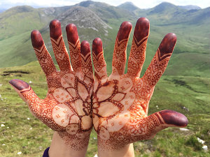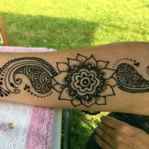 It takes about 45 minutes to an hour to do a whole hand. At private appointments, I pick elements from different designs, or I tell my clients to create a Pinterest board of what they like. At festivals, I bring a design book, so people can go through it and pick a design. On the hand, a design will last from 10 days to 2 weeks, if you don’t constantly wash your hands. You can rinse it off with warm water, but you’re supposed to let it flake off. My first major event was the New Preston Summer Stroll. I just did the sidewalk sale in Kent, and stores have hosted me, as well. I have a bunch of events coming up: I’ll be at the farmers market in Washington Depot, Conn. on Saturday (Aug. 19), and I’m giving henna workshops at the Kent Memorial Library on Aug. 23, The Montessori School for ASAP in Washington on Sept. 30 and at Twin Star in New Milford, Conn. on Oct. 6.