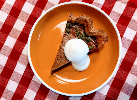 Bartlett HouseThe pumpkin tart at the Bartlett House Bakery and Cafe in Ghent, New York is baked not once, not twice, but three times, which makes it triply special. In the “Thrice-Baked Pumpkin Tart,” local pumpkins are first roasted to soften, then roasted again and baked with maple and cinnamon. The rich pumpkin mixture then gets the final bake inside the homemade pâte brisée tart shell and topped with pecans and currants. It's available in two sizes: a small round ($11) and large square tarts ($34). You have until Saturday, Nov. 18 to special order it, but there will also be additional tarts and baked good available for pickup at the bakery counter on the day before Thanksgiving.