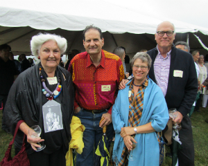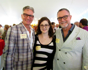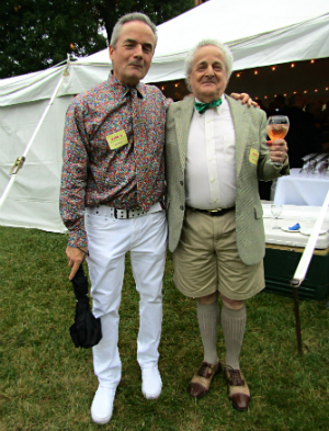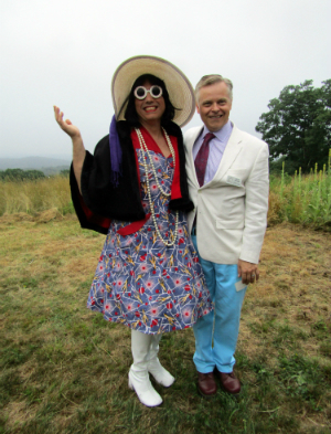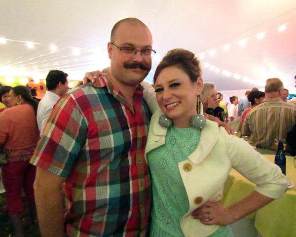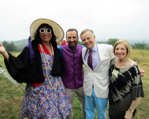 Amy Krzanik reports from Hudson. Cloudy skies and a little drizzle of a rain couldn’t dampen the spirits of the 300 or so attendees of Olana State Historic Site’s 50th birthday gala on Saturday, July 9. When not under tents, guests popped umbrellas to protect their duds, many of them harkening back to the fashions of the year Olana was saved from destruction. Adorable 1960s-inspired nibbles from Gaskins, Panzer, Wm. Farmer & Sons, Café Le Perche, The Corner at Hotel Tivoli and other Hudson Valley eateries were a big hit, along with freshly shucked oysters from Other Brother Darryl’s and libations courtesy of Fairview Wine & Spirits. DJ Javier Peral hand-picked (literally, all music was “of the times" from LPs played on turntables) the best tunes from the decade to keep the crowd swinging. Proceeds from the summer soiree support the site and its wide-ranging, year-round programming for students, visitors, artists and scholars. [Above, Trixie Starr, Michael Susi, Olana president Sean Sawyer and trustee Janet Schnitzer.]