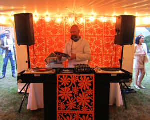 Olana's interim director of collections and research, Valerie Balint, with its education coordinator Elizabeth Schanz and volunteer Barbara Stevens; DJ Javier Peral spins tunes (on real vinyl!) for the crowd.