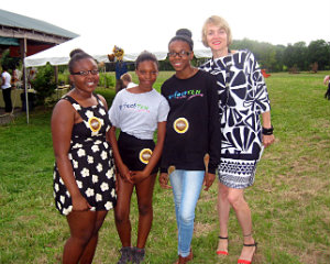 Martha Roth, a midwife from Nyack, and her son, Santos Irwin; Perfect Ten students and Hudson residents Damaris Shakespeare, Markiah Gordon and Destiny Collins, with Laura Miller, director of The Perfect Ten After School, Inc.