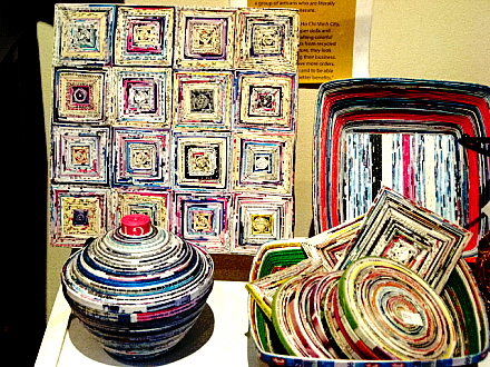 Gina NeJame describes her workshop/boutique as 1/3 fair trade, 1/3 new age, and 1/3 custom-blended aroma therapy. It also serves as a studio where local kids drop by to learn techniques for making things, such as these free-trade coasters and containers woven in Viet Nam from pages torn from magazines. Chatham Makes Scents, 9 Main Street; 518.393.9922