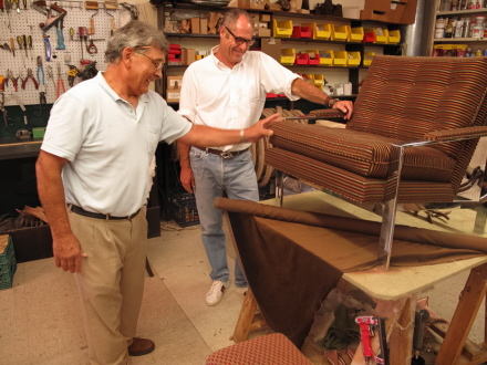 We consider ourselves very lucky—our upholsterer of over 25 years, Michael Gonzalez (Diamint Upholstery) has his workrooms halfway between Manhattan and Germantown, so I get “city” services upstate. Diamint is comfortable and happy working from Manhattan to Chatham. I can stop by to tweak the furniture and curtains we have in the works either on the way up or on the way back. Works for everyone. Tweaking is key, especially for a novice. Me, after 25 years, I can envision the final product. I know that I want tiny French nails or huge iron ones, I can throw out “make it a medium Bridgewater,” and Michael and I both know exactly what I mean. Shorthand…
