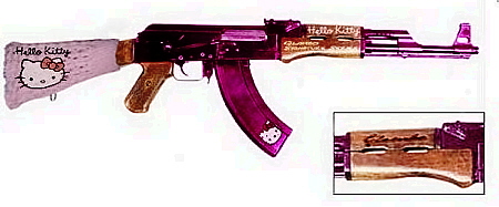 Hello Kitty (!?).. For those rowdy rural PTA meetings. So boo hoo, NRA, ‘Assault weapon’ still works for me. They assault my senses, and they assault my sense of fair play. And they kill people. Your old-fashioned, basic, double-barreled shotgun is tres passé, replaced by militaristic killing machines that pump out exploding bullets. At deer?? The answer to question #2 is 700,000 New Yorker’s hunt. 3.6% of the population. A rather loud 3.6%, no? Don’t’ even think about suggesting a Wait period or security check, because to quote one site, “Concealed handguns provide a means to protect yourself from attack by the predatory criminals in our society.” Damn. What happened to scream and run away???