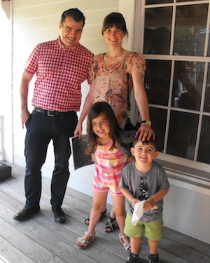 Eli Hansen, Becca Gilbert, Sam Gilbert, and Stefania Boone; Karen Klopp, John Klopp, and Laurence Levin.