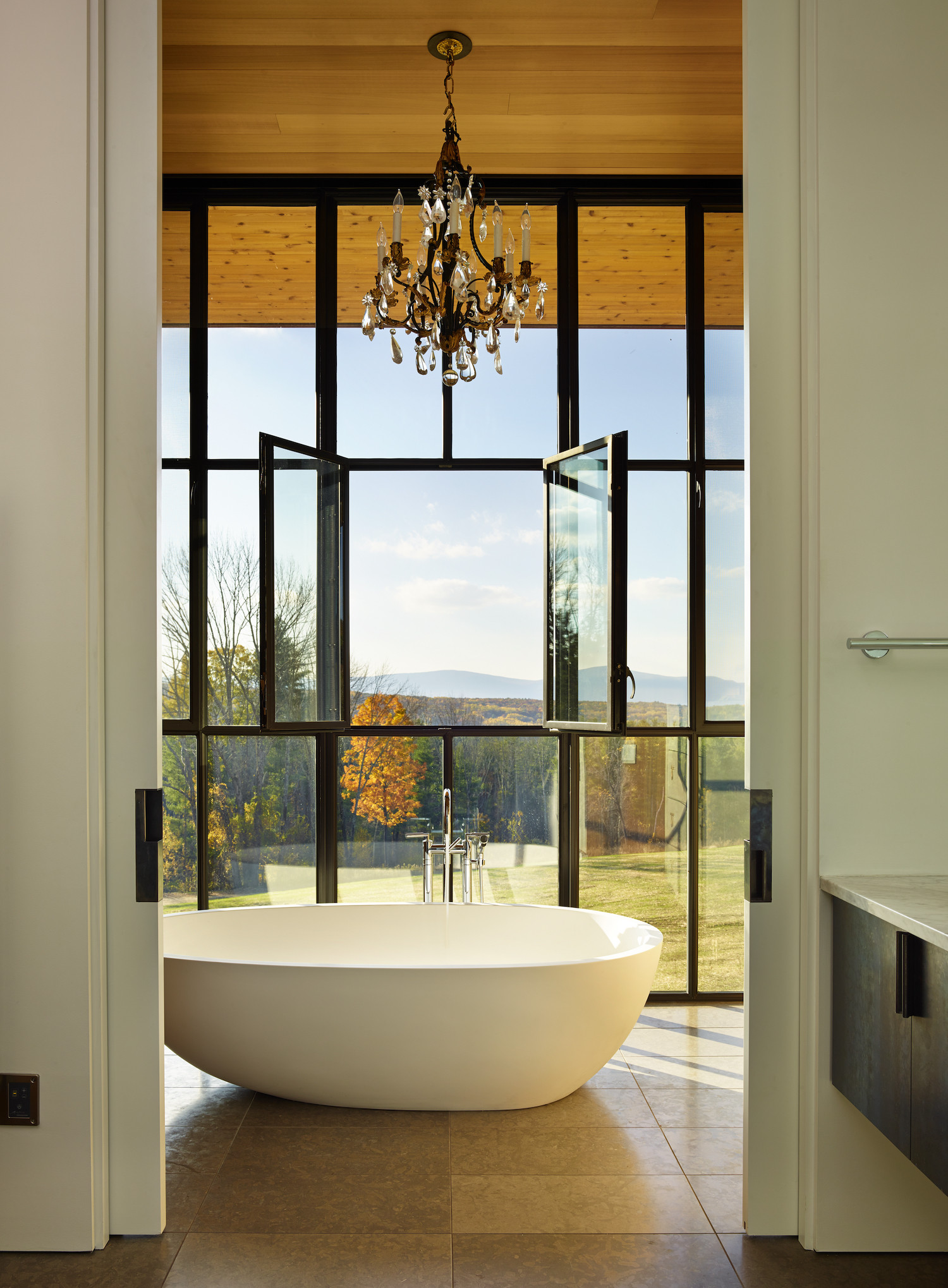 Tucked deep in the rolling hills of the Berkshires in New Marlborough, Massachusetts is the otherworldly estate known as Vergelegen. The word comes from the Afrikaans for “situated far away,” and it’s the exact feeling that defines the sprawling property of nearly 300 acres of rolling meadows, ponds, forests, and river frontage that ensconses the Tom Kundig-designed home at its center.