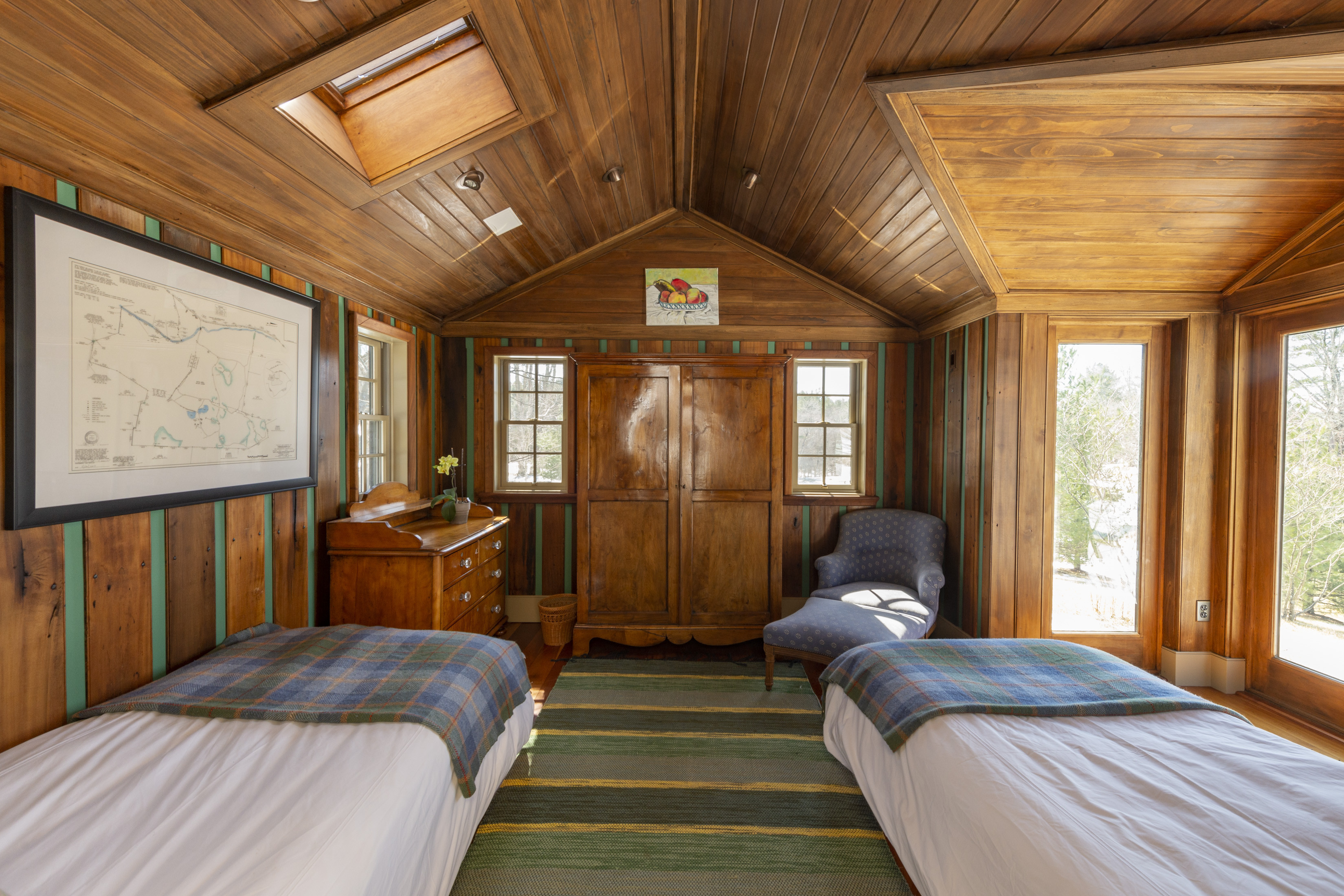 The landscape design by the acclaimed London-based landscape architect Tom Stuart-Smith enhances the site’s natural and created environments, including a “Paradise Garden” for vegetables, fruit, and cut flowers and wooden palisade fencing that encloses a circular area with plantings, gravel paths, and benches, centered by an apple tree. With two additional renovated full-season guest cabins, there’s room for plenty of family and friends yet still enough space for the contemplative and creative quietude that the Berkshires inspires.