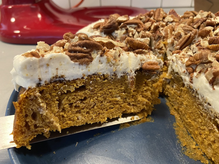 Misto's pumpkin skillet cake with cream cheese frosting and toasted pecans