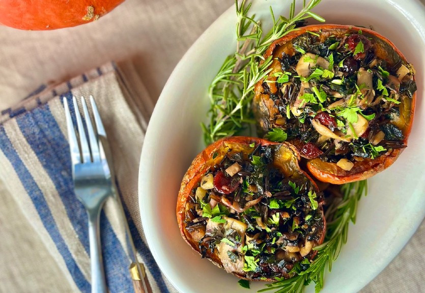 Talbott & Arding stuffed local winter squash with mushrooms, wild rice and lacinato kale. Photo: Mona Talbott