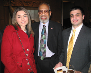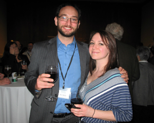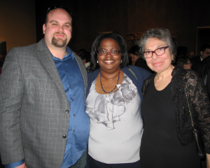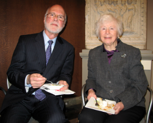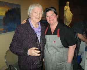 Amy Krzanik reports from Pittsfield. The Berkshire Awards, started three years ago to honor those who have significantly advanced the arts, historic preservation and environmental conservation in the Berkshires, held its 2015 awards ceremony at the Berkshire Museum on Friday, March 13. This year’s three recipients were preservationist, conservationist and agricultural leader Lila Berle; community leader, Pittsfield City Councilor and president of the Samuel Harrison Society Churchill Cotton; and Mary Rentz, a community organizer, promoter of public arts and culture and president of the Berkshire Art Association. After a humorous and moving short film tribute to each of the award winners, directed by Richard Sands, the party moved upstairs to the Museum’s Crane Room. Chef Brian Alberg of the Red Lion Inn, along with Chef Dan Smith of John Andrews and Allium’s Daire Rooney, supplied hors d’oeuvres as the honorees were congratulated for their inspiring work by their families and a community of supporters. Shown left, honoree Lila Berle with Allium chef Daire Rooney.