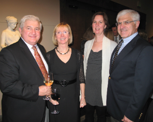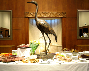 Berkshire Museum's Executive Director Van Shields, who was celebrating his birthday, with artist Peggy Rivers, Carolyn Butler and Richard Seltzer, president of the Stockbridge Bowl Association; A crane presides over the hors d'oeuvres in the Crane Room.