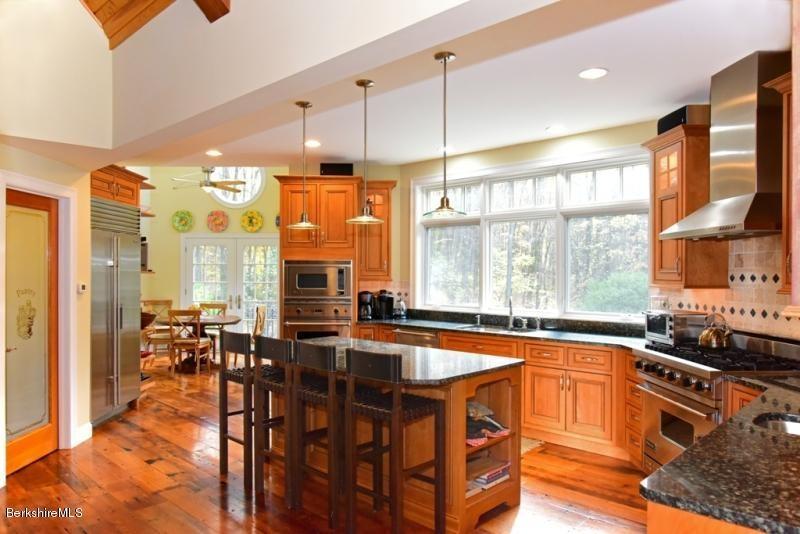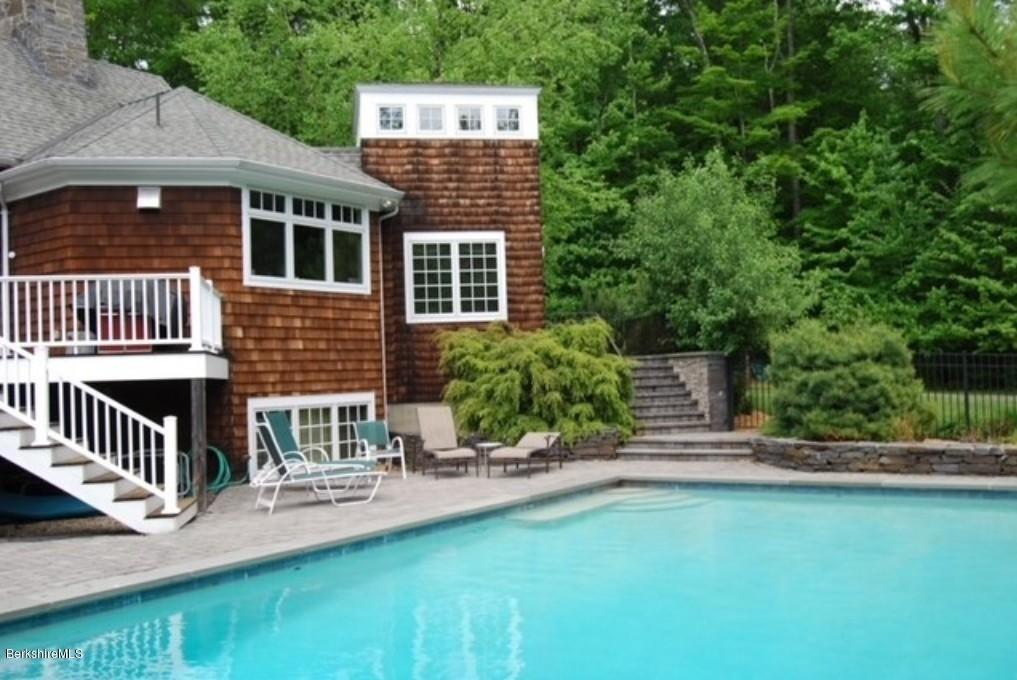 This home sits on more than eight acres in Great Barrington. It has five bedrooms and four bathrooms, a truss ceiling great room, state-of-the-art kitchen and breakfast nook tower. The lower level is euqipped with a workout room and sauna; a large studio space above the garage is perfect for a private office or guest quarters. The property includes a private tennis/basketball court and heated pool. Listed at $2,995,000 by Lance Vermeulen Real Estate.
