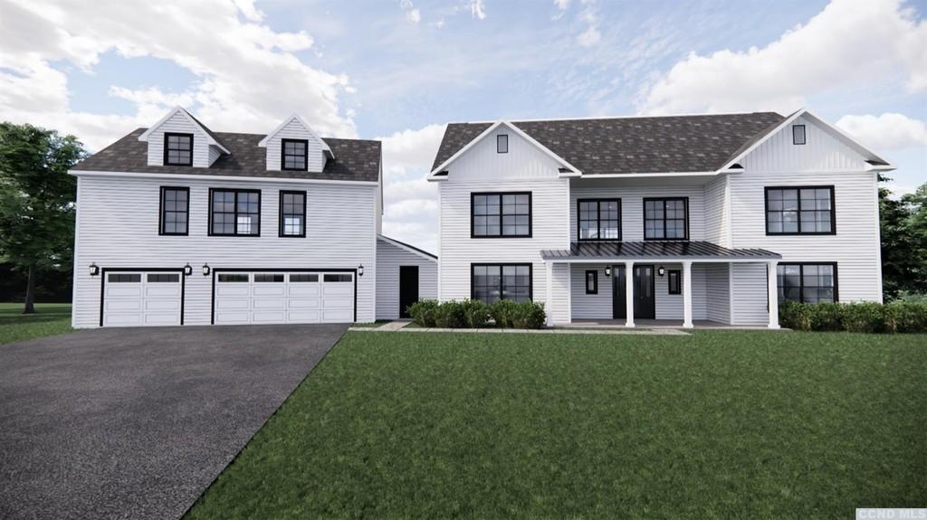 Here are plans for a modern farmhouse you can make your own in Millerton. The plan offers four bedrooms and five bathrooms, with a loft office, elevator to all three levels. There is also a media room and wine room, and a three-car garage with a full second floor for guests. The location allows for a walk into the Village. Listed at $1,650,000 by Dutchess Country Realty, Inc.