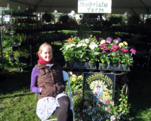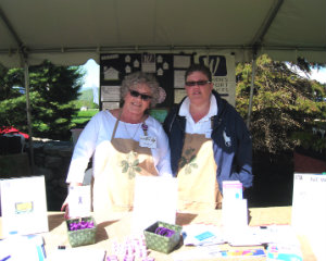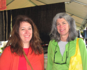 Makristo Farm's Christa Stosiek enjoys the sunshine; Pom Schillingford takes a break with Heidi Hendricks, who co-chaired the antiques committee.