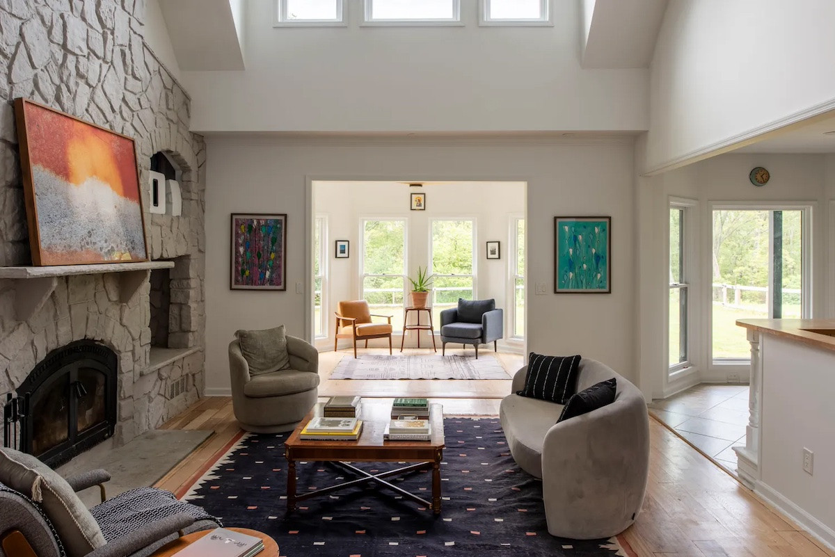 A modern farmhouse is set on 3.95 acres in the hamlet of Staatsburgh.
