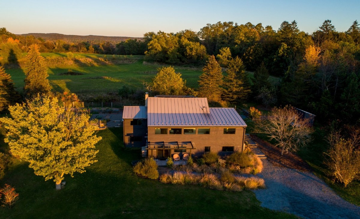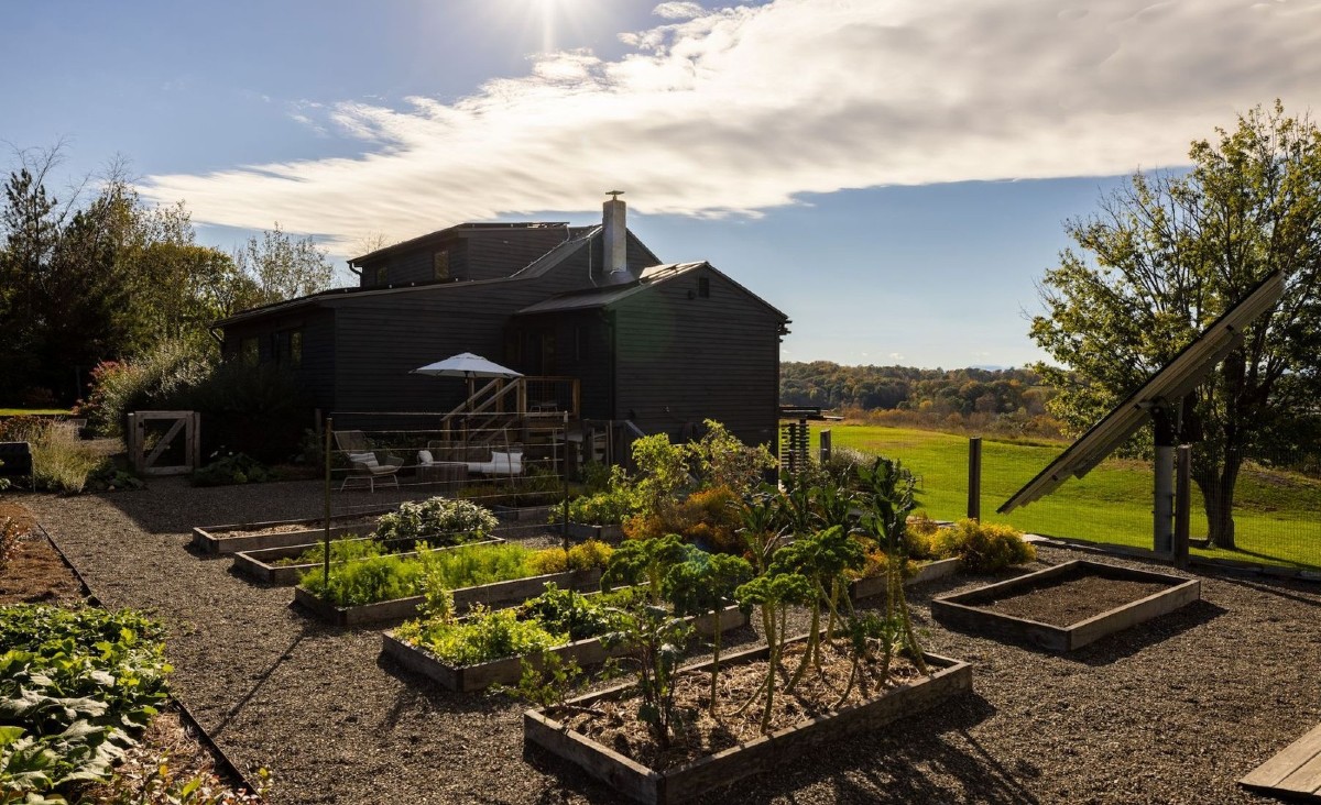Located on a quiet country road in Ghent, this four-bedroom, four-bathroom modern farmhouse was built in 1975 but has been renovated inside and out, with a new metal roof, triple-pane windows, reclaimed and oiled white oak floors, and new electrical systems. It has an open living area and enormous kitchen. The landscape around the house has been reshaped by a landscape designer with sustainable native planting, and there are private sitting areas outside. Listed at $975,000 by Select Sothbey's International Realty.