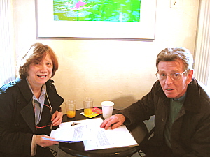 Donn Potter of The Country and Abroad Magazine; musician Joanna Seaton.