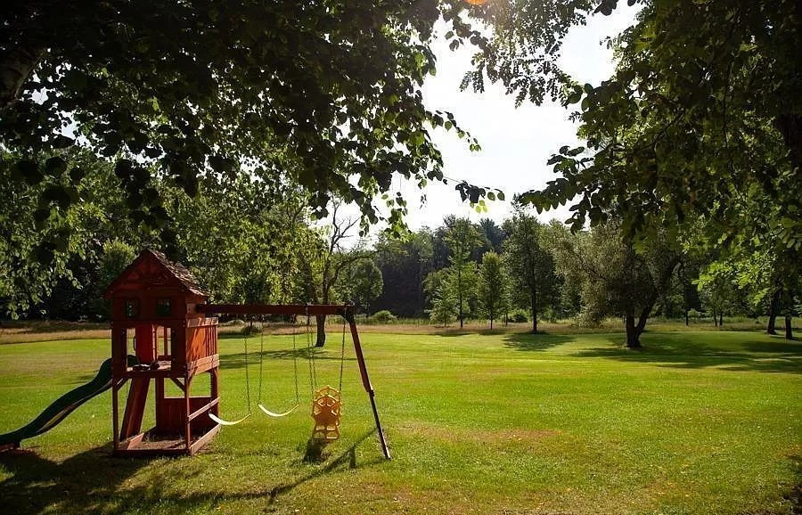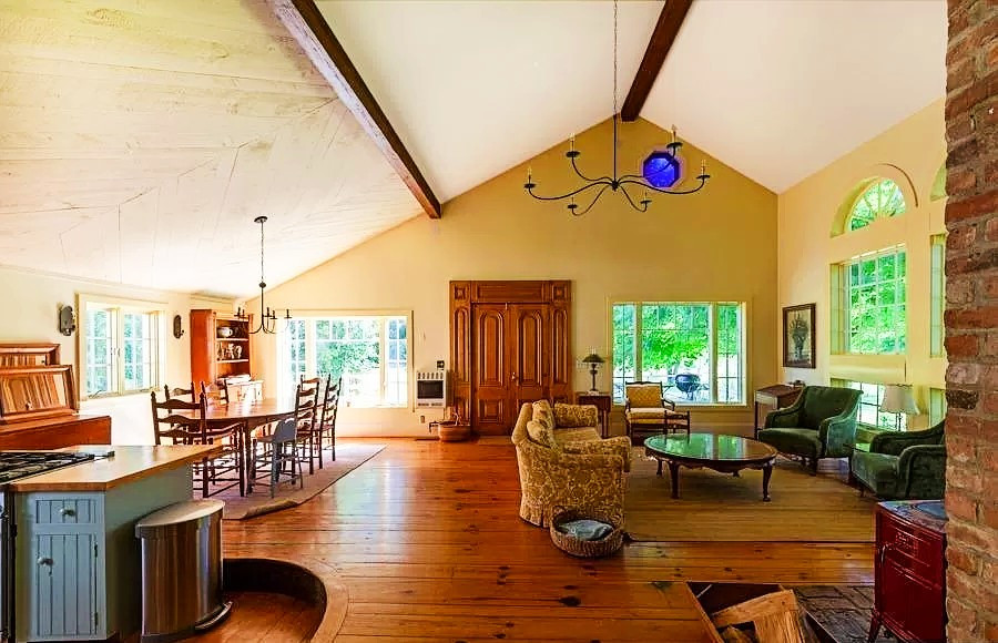 Built in 1868, a five-bedroom, four-bathroom Colonial on 23 acres in Valatie is offered in mint condition. Enter through a porch to old pine floors, chef's kitchen, and large deck overlooking the trees and swim ponds. The first-floor master has a fireplace. Upstairs are three bedrooms and a small nook off one that's perfect for a playroom. The grounds hold a barn with guest space and studio. Listed at $1,349,000 by Gable Real Estate.