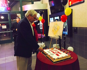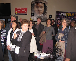 Rachel Louchen reports from Great Barrington. The 20th anniversary celebration of the Triplex Cinema was as much a lesson in Great Barrington history as it was a party. On Thursday, Nov. 12, the town's one and only movie theater celebrated two decades with food and a special screening tracing the history of how the cinema came to be. It's hard to believe, but 20 years ago the Triplex and its surrounding area were not the bustling social hub we know today. Instead of restaurants and stores there were empty buildings and a lumber yard. But after a fire at the lumber yard, Triplex owner Richard Stanley wanted to make use of the desolate space and, after some consideration, decided to open a movie theater. It took a lot of blood, sweat and tears for Stanley, and help from the community, many of whom spoke on Thursday night. Everyone involved, from the mortgage broker to members of the Chamber of Commerce, acknowledged what a special presence the Triplex is and how it revitalized the town by bringing in businesses and people, and becoming a destination for Great Barrington. Shown above, former president of the South Berkshire Chamber of Commerce Richard Brittain, president of Berkshire Housing Elton Ogden and Richard Stanley.
