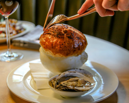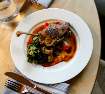 Chef Marcel Agnez has assembled an elegant, seasonally influenced, farm-to-table menu that makes decisions difficult for the diner. The scallops or the black bass? The venison chop or the roasted chicken with braised endive? A vegetarian delight, an enticing pasta dish or one of the specials? On days of operation (Thursday through Sunday) breakfast and lunch are offered, as well as a Sunday brunch. For dinner, starters range from fresh oysters with a blood orange granita ($3 each) to a refreshing Belgian endive salad with candied pecans, blue cheese and poached pears ($13). For a warm-up during colder months, there’s a savory baked oyster and leek chowder ($11).