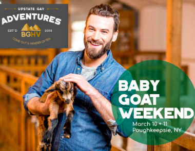 As Hengst and his partner travel between Philadelphia, New York and Provincetown, they make it a point to take in shows and bring their favorite acts to the Hudson Valley. In an area like the Hudson Valley, says Hengst, there are some gay-friendly bars, but there hasn’t been a gay bar — a central gathering point — for some time. “It’s been a challenge to find your tribe,” he says, “so we created BGHV to give people an opportunity to gather and meet one another, and that may not necessarily be at a bar or nightclub.” It might be in a barn. Big Gay Hudson Valley's Upstate Gay Adventure: Baby Goat Weekend at Sprout Creek Farm 34 Lauer Rd., Poughkeepsie, NY Saturday, March 10 & Sunday, March 11