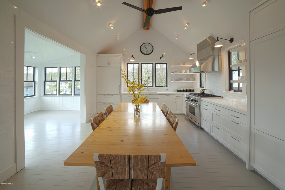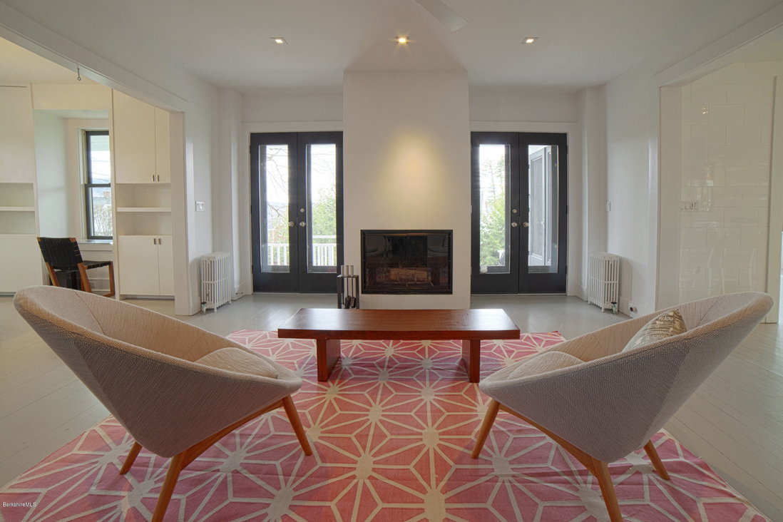 Though built in 1901, this four-bedroom, four-bathroom farmhouse close to Great Barrington's Main Street is modern and custom designed. The kitchen has a sunny south facing wall of windows, there is a wood burning fireplace, a flexible open floor plan, a wraparound open porch, powder room and a mudroom upon entrance. This house has a unique third-level private master suite as well. Enjoy great views from this Great Barrington home. Listed for $949,000 by Helen Mullany Real Estate.