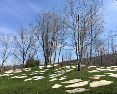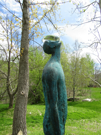 The Gatehouse, the building that greets you upon arrival, is stunning. It’s bright white, and both sharp and rolling, mimicking its setting. The pathway leading to it from the lower parking lot acts as a mirror of the sky above. The rocks are round and evenly spaced, resembling clouds on land. Even the parking lot grass has been planted with a designer’s eye for detail, some long, some short. A meadow up above (the Piazza del Campo) has had the same treatment – its groundcover a custom-made seed mix chosen by local garden expert Naomi Blumenthal. The grasses resemble short, tousled hair and invite visitors to sit and linger. Around back, large glass doors on one side of the gift shop slide open for access to a patio, called Brussels Square. From there, you can take the Loop path, which is wheelchair-accessible. Swing by the quarry (you’ll want to snap a photo) and view TPAS’s 8 current sculptures, most the work of Turn Park founders Igor Gomberg and Katya Brezgunova’s favorite Russian artists, and one piece by current Plainfield, Mass. resident Gene Montez Flores.