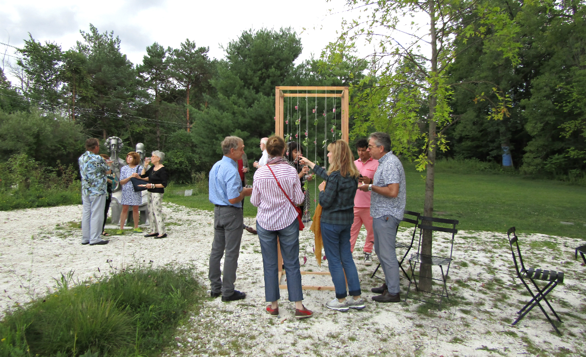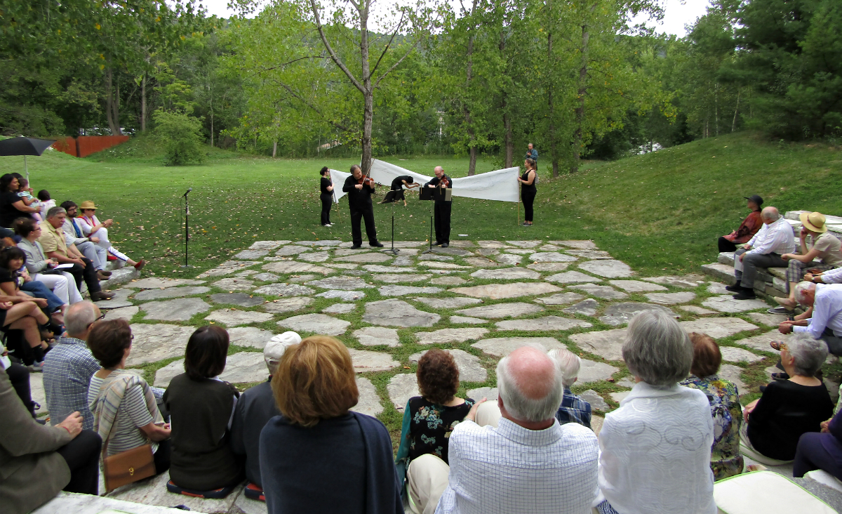 The passionate dedication of the founders and architects behind TurnPark Art Space in West Stockbridge, Mass. is obvious in the site’s quality of construction, its attention to detail and its peaceful beauty. But the sculpture park/community gathering spot also is imbued with a sense of fun, and a willingness to serve as the venue for all sorts of experimentation. Since its opening in May of 2017, the space has welcomed pop-up markets, food festivals, art workshops, children’s events, dance, theater, music and more. Its inaugural benefit, held on Saturday, Aug. 24, celebrated the spirit of such collaboration. Architect Frida Foberg and visual artist Natasha Holmes created dill+cilantro, an installation built specifically for the benefit that featured edible interactive elements on five structures. Guests picked their own hors d’oeuvres — tandoori chicken, maple-glazed thyme carrots, beet-pickled quail eggs — straight from the artworks. A performance followed in the amphitheater, featuring Boston Symphony Orchestra members Victor Romanul and Michael Zaretsky on violin and viola, with dancer and visual artist Jaanika Peerna creating an artwork behind them. Proceeds from the event will go to help ensure TurnPark continues to be a sanctuary of natural beauty, unique art and innovative programming.