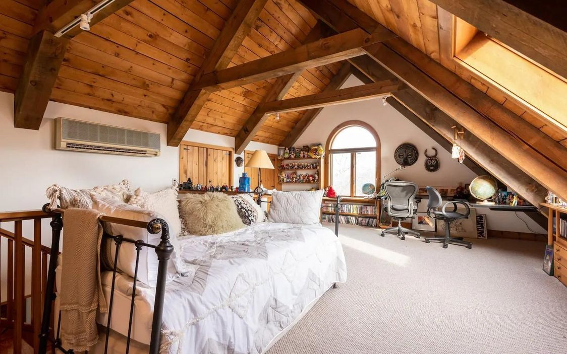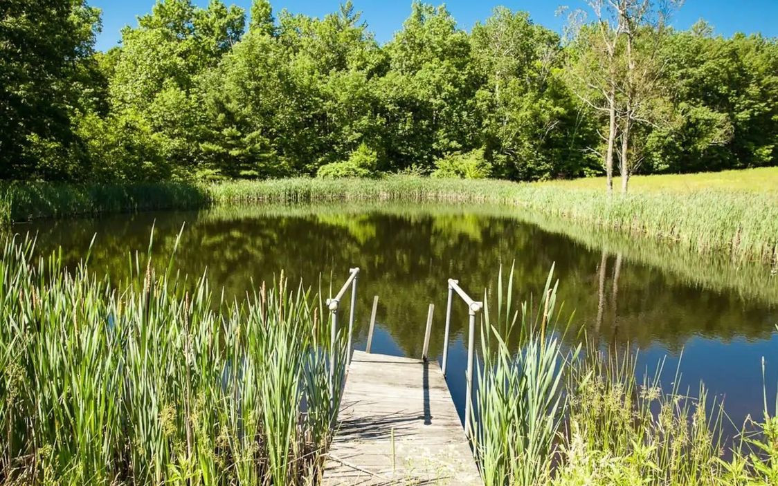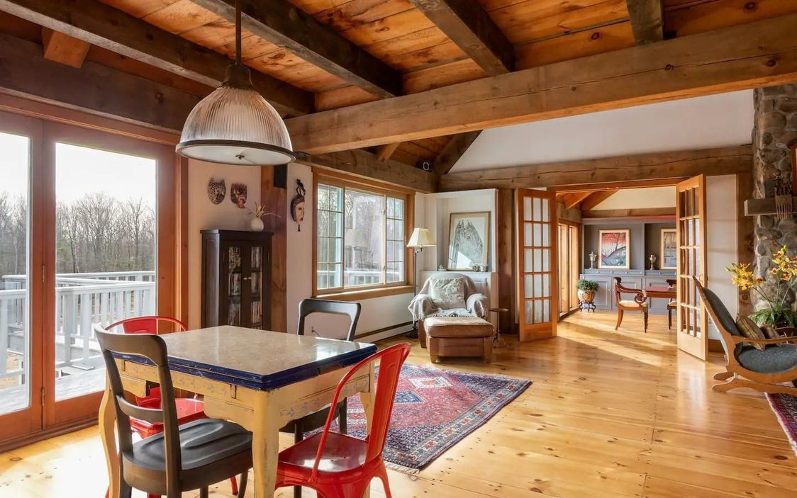 The main house on the Old Chatham property has five bedrooms and four bathrooms, and an open floor plan that includes a large sunroom. There is a spacious loft area, and two master en suites with access to the yard and gardens. The second two-bedroom house is a perfect rental property. Both homes have new appliances. The acreage includes a swim pond. Listed at $1,250,000 by Houlihan Lawrence.