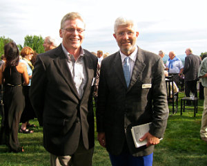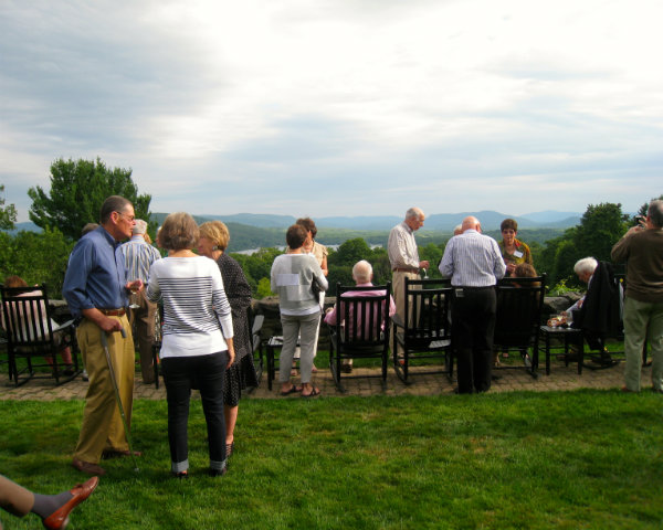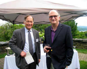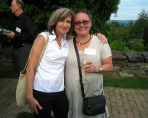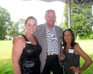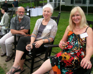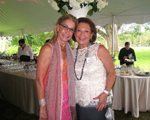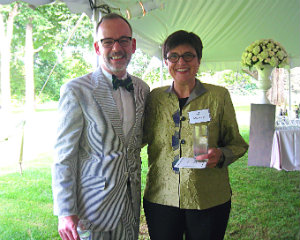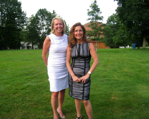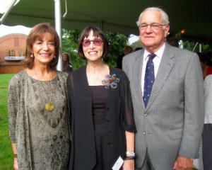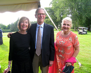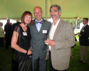Lisa Green reports from Lenox, Part 2. Seranak estate, the historic summer home of Tanglewood founder and legendary BSO Music Director Serge Koussevitzky, is now a supper club with privileges going to high-level donors. But on Monday, August 10, the property, sitting high atop a hill a quarter mile from Tanglewood, welcomed a special contingent for the Tanglewood Business Partners Night. These were deserving guests; Tanglewood business partners raised more than a half million dollars this year, 111 percent over their financial goal, due in part to the addition of many new businesses. After the cocktail reception, guests retreated to a tent where they became an audience to the New Fromm Players, an ensemble drawn from recent Tanglewood Music Center alumni, who played selections by von Weber and Mendelssohn, accompanied by the sounds of wind and thunder. The rain held out, though, so the hors d’oeuvres segment of the evening proceeded without interruption, and the view of the Stockbridge Bowl continued to enthrall even during dusk. [Above, Mary Jane White and Nancy Fitzpatrick, co-chairs of the Tanglewood Business Committee, with Kim Noltemy, the BSO’s chief marketing and communications officer.]