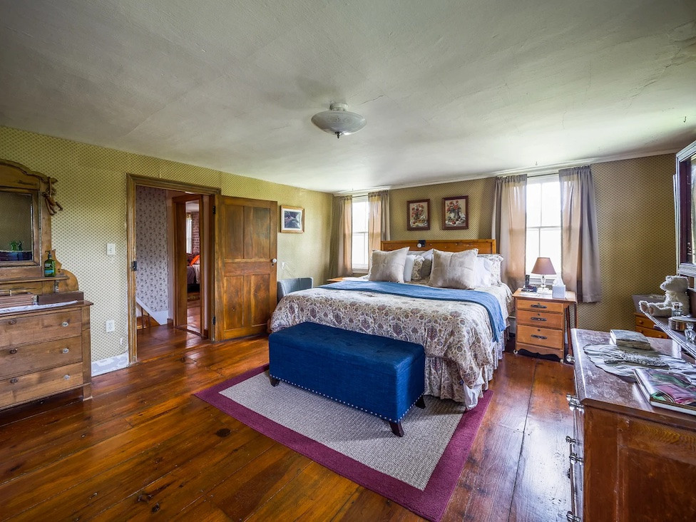 In Ancram, a three-bedroom, one-bathroom farmhouse dating to 1850 is set on 500-plus acres of land unencumbered by agricultural or conservation easements. It provides a mix of views, fields, cropland, woodlands, ponds, barns (old and new), and two farmsteads. Listed at $3,500,000 by William Pitt Julia B Fee Sotheby's International Realty.