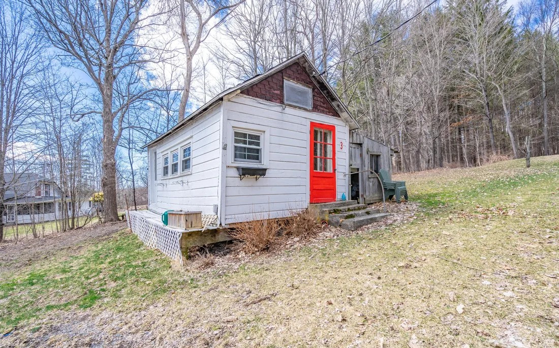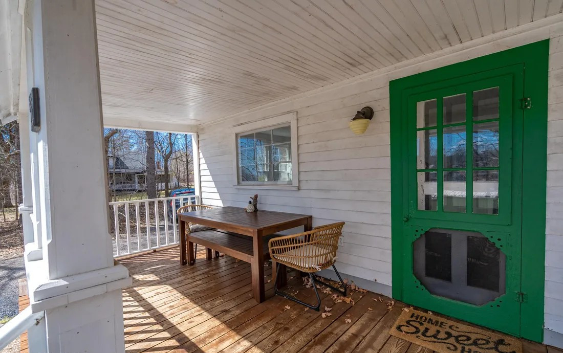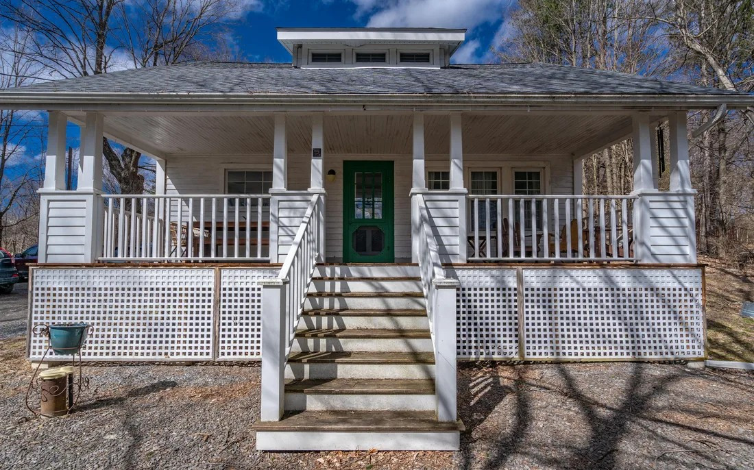 A Cape Cod-style cottage with a covered front porch in Old Chatham has three bedrooms and two bathrooms, a spacious living room, an updated kitchen, and a large dining room. A bonus outbuilding on the property provides possibilities for use as a home office, workshop, or additional storage space. Listed at $299,900 by Keller Williams Realty Capital District.