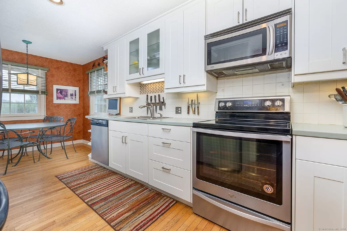 An updated condo in Litchfield offers two bedrooms and three bathrooms. A spacious great room includes a wood-burning fireplace, vaulted ceiling, hardwood flooring and French doors leading to a private bluestone patio. A tandem garage includes additional storage space. Listed at $425,000 by William Pitt Julia B Fee Sotheby's International Realty.
