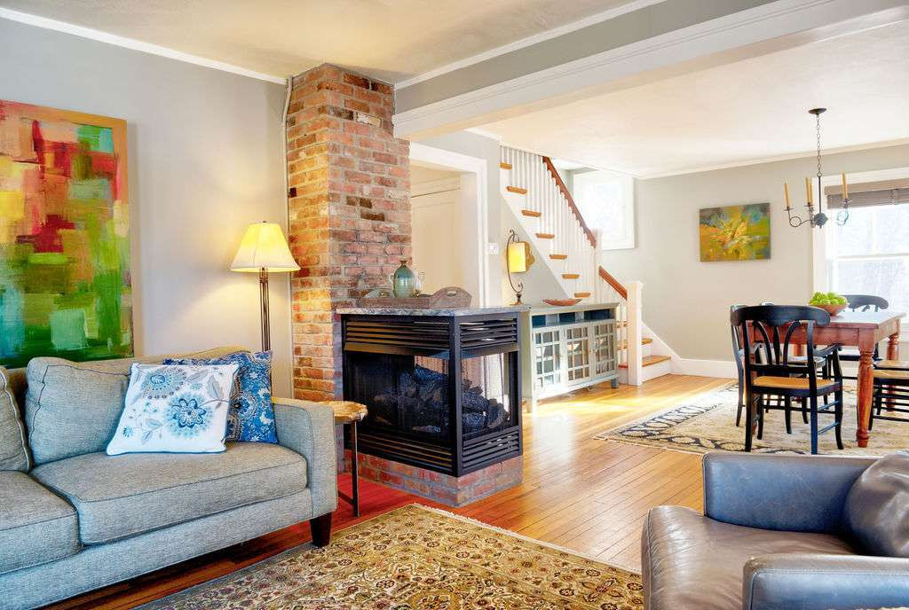 Close to the center of Stockbridge, this cottage-style home has three bedrooms and three bathrooms. Features include a built-in pantry, fireplace, three-season front porch, brick patio with a pergola and firepit. Outside there is a fenced garden with fruit trees and wildflowers. A furnished option is available. Listed at $539,000 by HomeZu.
