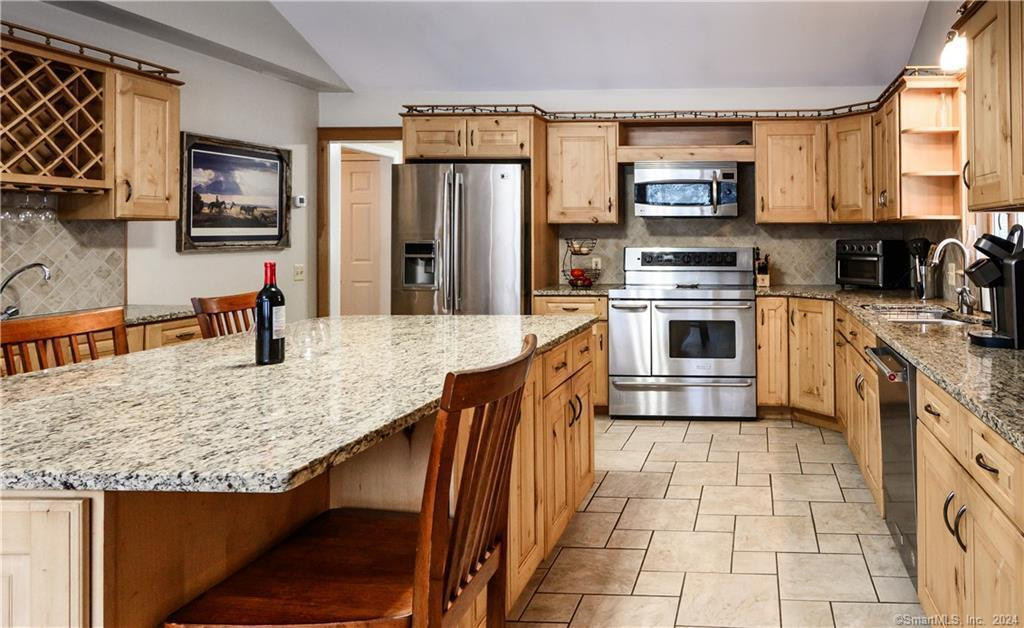 A country home in Warren has been updated and features an open floor plan with a 25-foot native stone fireplace. There are four bedrooms and three bathrooms, a deck, screened porch, patio and pool. The gourmet kitchen offers radiant floor heat. The detached garage has large unfinished space with potential to convert to living space. Listed at $695,000 by Bain Real Estate.