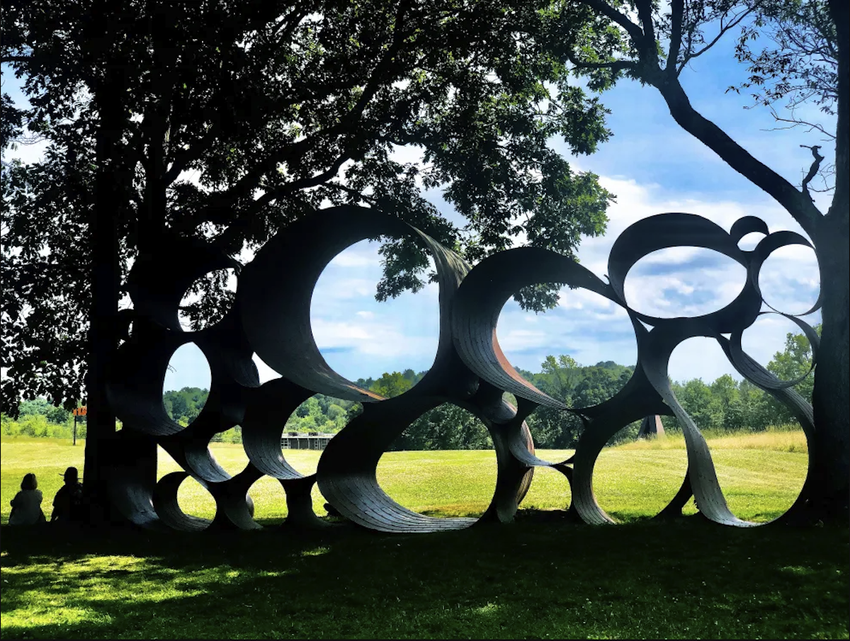 No book on contemporary Hudson Valley culture would be complete without Art Omi, the 120-acre sculpture and architecture park in Ghent. Founded in 1992 by Francis J. Greenburger, Art Omi has become an international nexus, hosting artists from more than 120 countries while remaining a playground for local families. Arnaud’s camera lingers on Olaf Breuning’s powder-blue aluminum clouds, Ivan Navarro’s water-tower installation This Land Is Your Land, and children tumbling across meadows dotted with monumental works. What the book captures, and what visitors know, is that Art Omi collapses the categories of art world, town fair, and Sunday stroll. It is simultaneously global and hyperlocal, serious and playful.