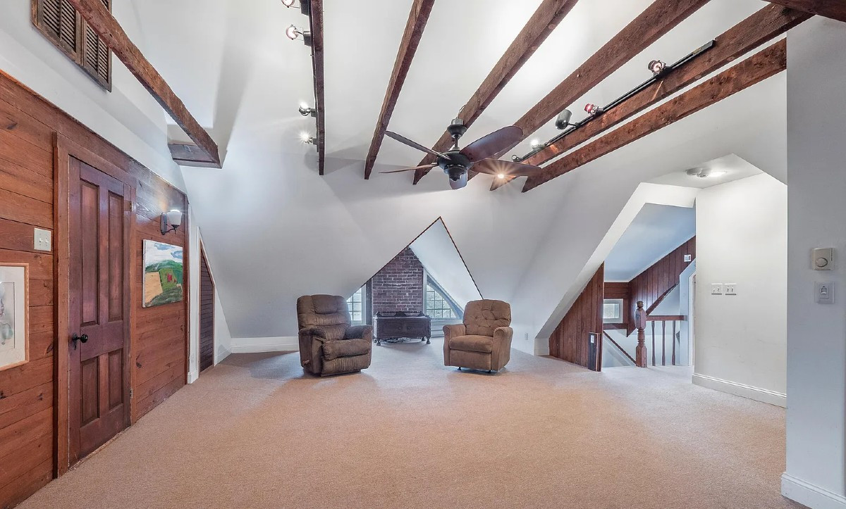 Well-loved by its current owners, this classic Victorian in Lee offers five bedrooms and four bathrooms. It has an upgraded kitchen, a first-floor den/bedroom with full bath, and above the five upstairs bedrooms a huge attic bedroom/family room. There's also a guest house and studio building. Listed at $995,000 by William Pitt Julia B Fee Sotheby's International Realty.