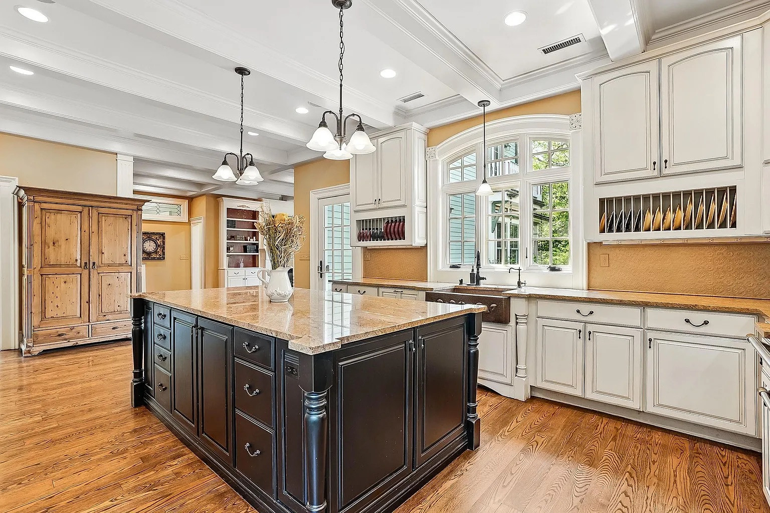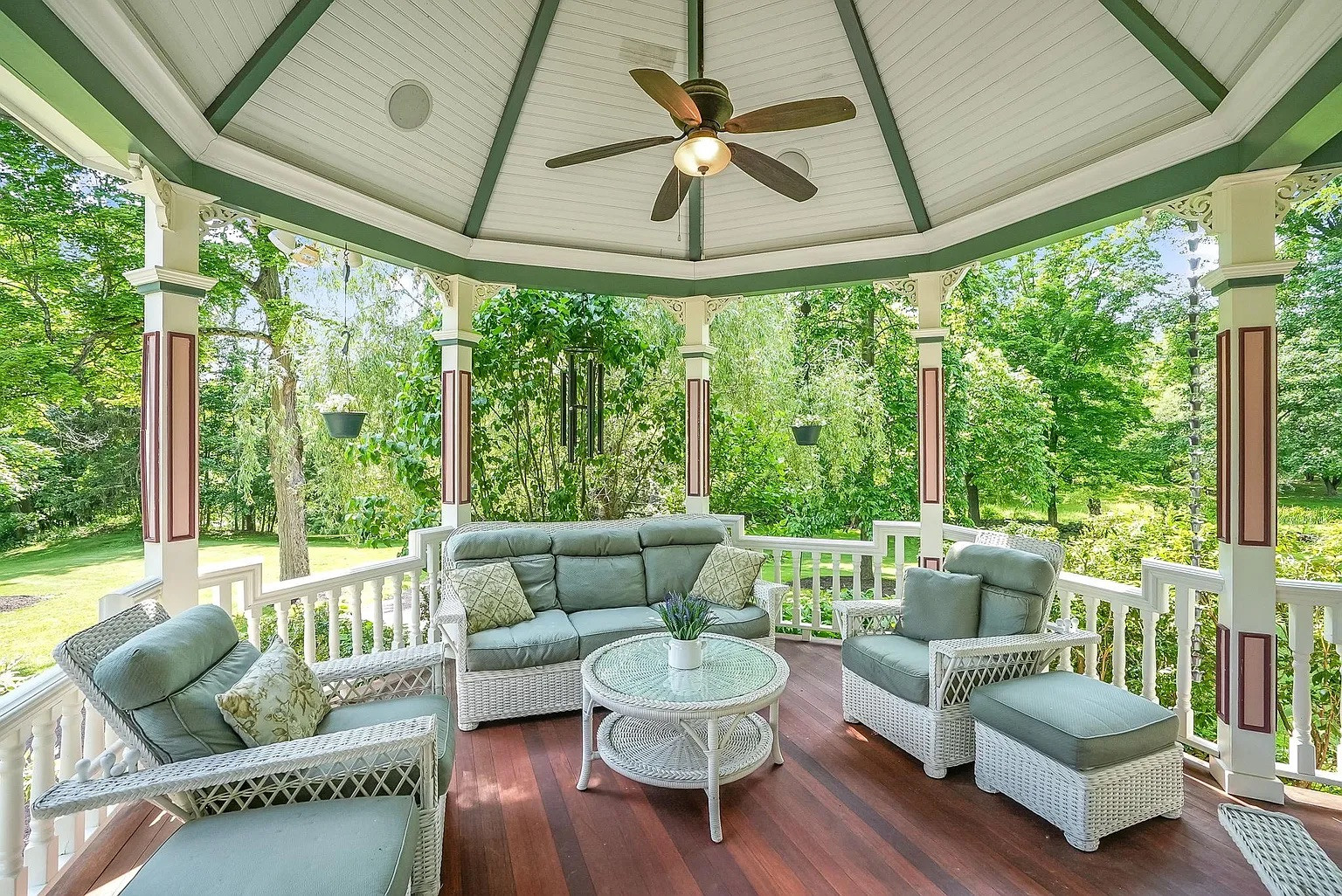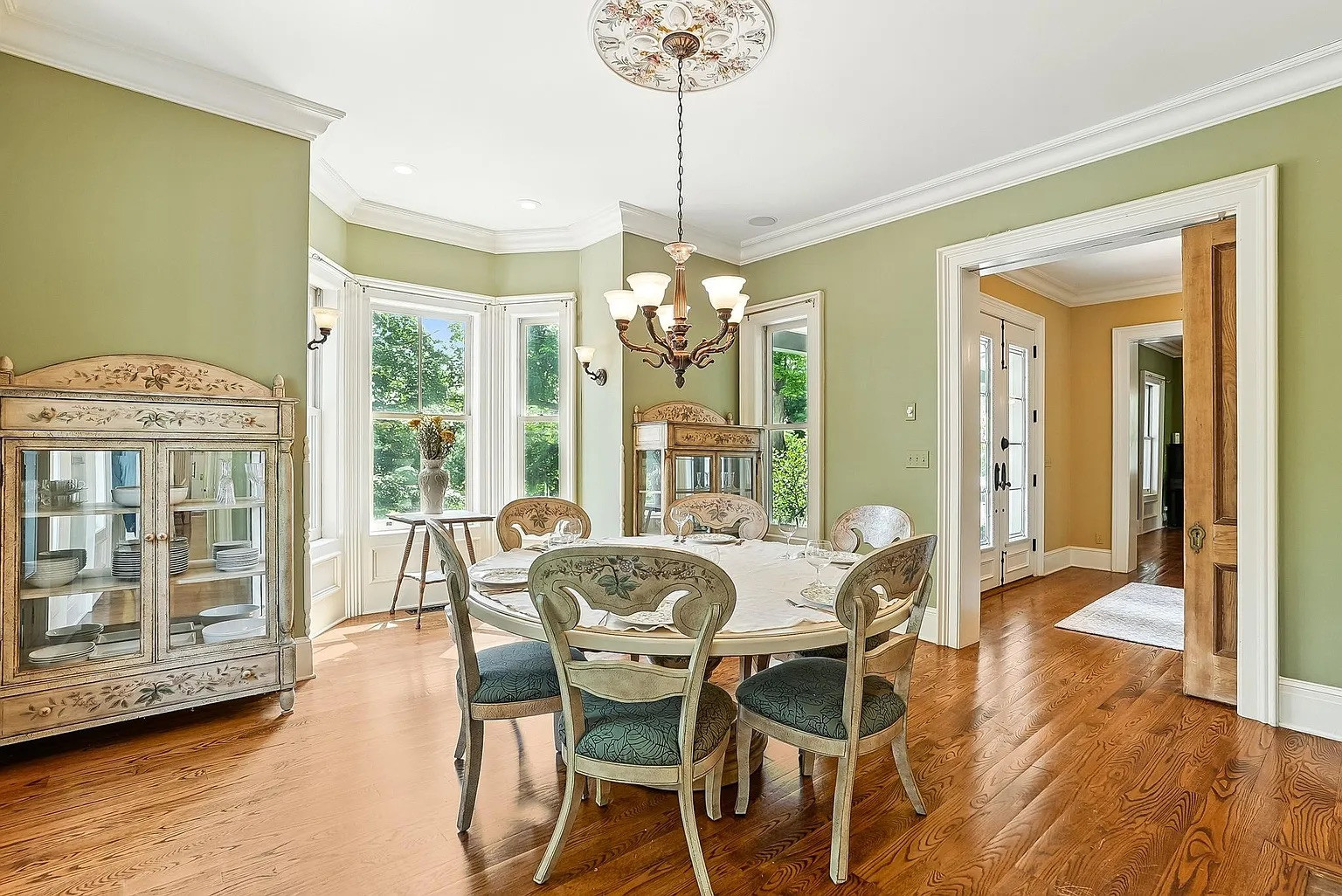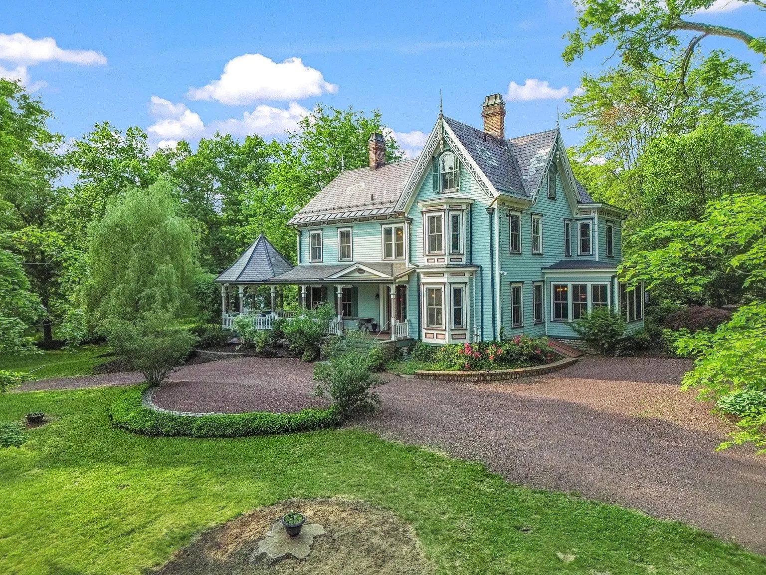 Within the main residence, with painted lady-esque charm, is a chef’s kitchen with a double oven, a formal dining room and a wraparound veranda. There are five bedrooms within, multiple fireplaces, and both a grand family room and den. This estate includes a two-bedroom guest cottage, a private-entry studio, and additional flex rooms. Outdoors, landscaped walking trails, an in-ground pool, and a garden fire pit create a perfect summer setting.