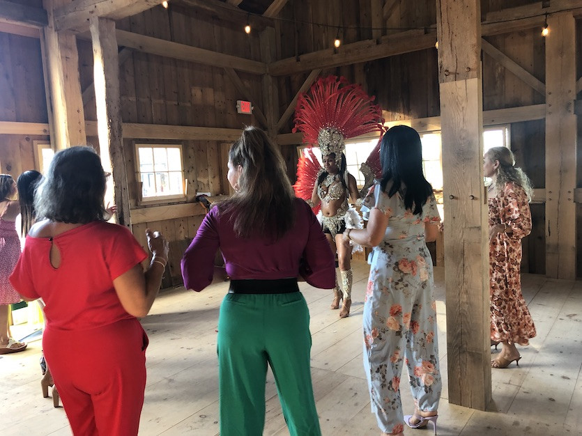 VIM — Volunteers in Medicine Berkshires — has a heart as big as the number of people it provides free, comprehensive health care to. Every year, VIM, headquartered in Great Barrington, treats more than 1,300 patients, works with 170 volunteers who donate 10,000 hours of their time; collaborate with more than 20 agencies across the region…and the numbers go on. On Thursday, June 22, VIM volunteers, supporters, and staff celebrated its successes at Balderdash Cellars in Richmond, Massachusetts with a fiesta. Executive Director Illana Steinhauer related a few heart-rending — but uplifting — stories about patients (many of them immigrants) who have found their way to VIM for medical, dental and behavior health care. She also spoke about Care Works, VIM’s $20 million campaign that will allow the organization to open a new care center in Pittsfield, complete renovations to the Great Barrington Care Center, and sustain its work for years to come. Following the remarks, a dance party ensued, with Luana Dias David, a samba dancer in fantastical Brazilian garb, encouraged the partiers to do some moves of their own.