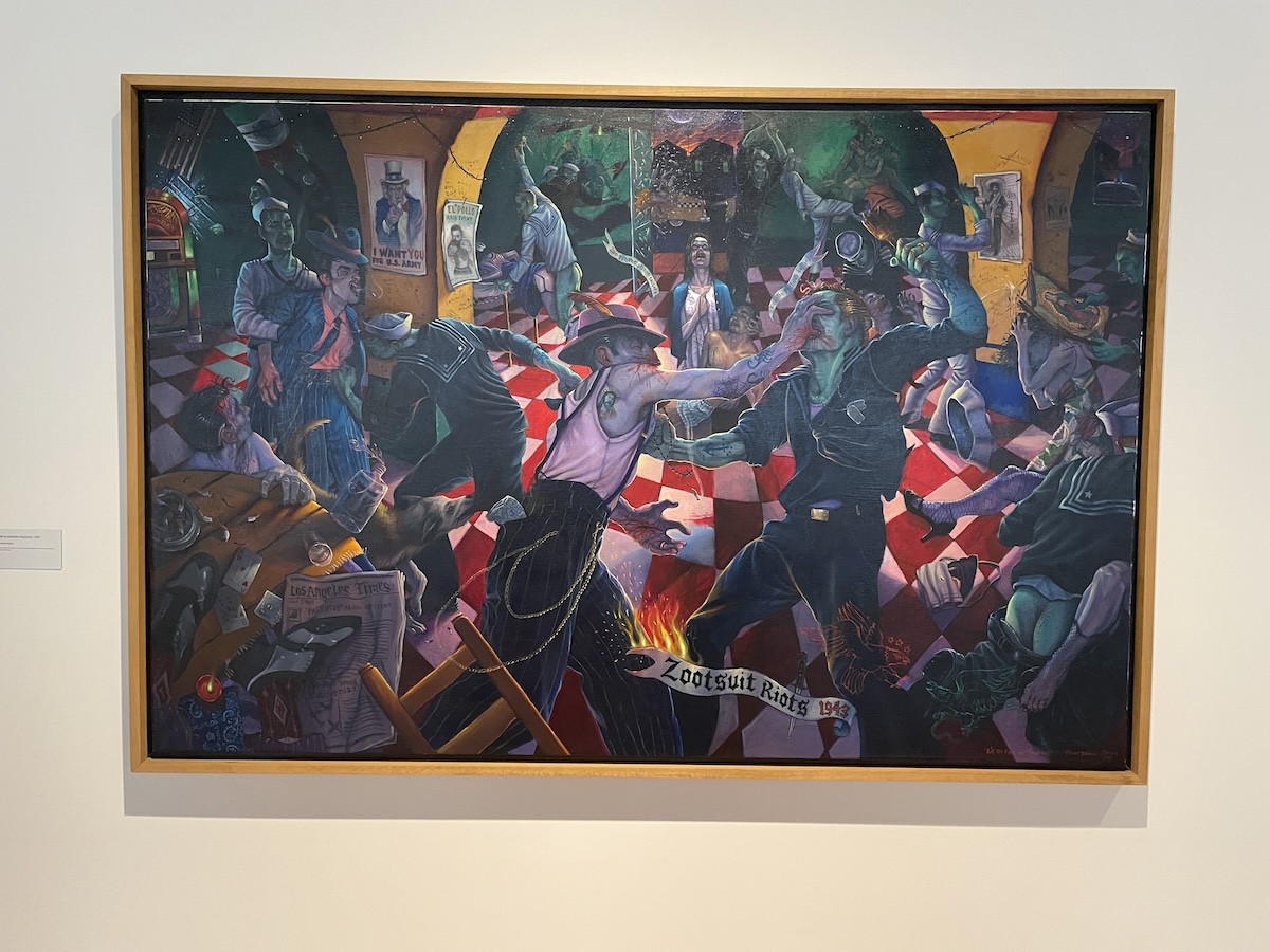 Vincent Valdez, Kill the Pachuco Bastard!, 2001. Oil on canvas, 48 x 72 inches. Collection of Cheech Marin and The Cheech Marin Center for Chicano Art & Culture of the Riverside Art Museum, California.