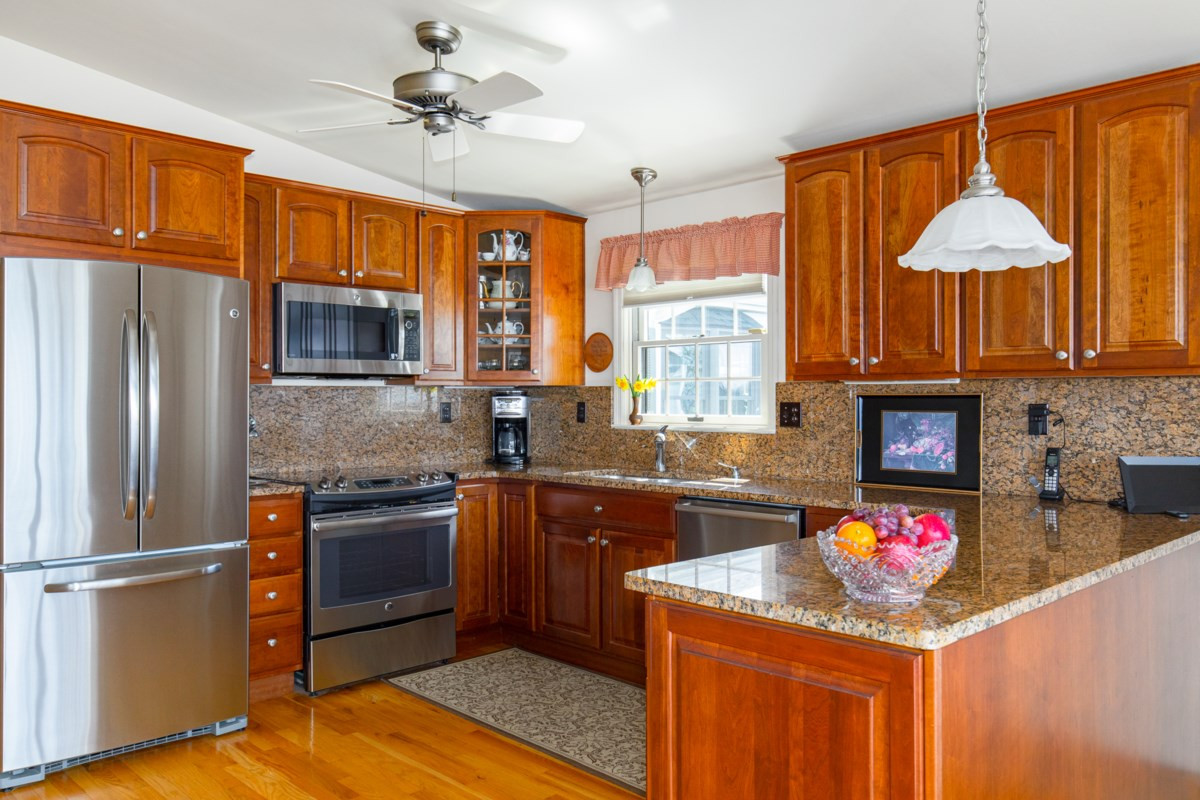 A contemporary home is sited at the top of a ridge in Elizaville with spectacular Catskills views. It offers three bedrooms and four bathrooms, an open-concept great room, western views from inside and out to the deck with a pergola and bluestone terrace to the north. A private guest suite has its own entrance. There are 3.7 acres with professionally landscaped gardens plus an enclosed vegetable and cutting garden, and a two-story garden shed. Listed at $819,000 by Houlihan Lawrence.